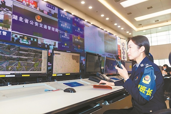湖北省公安交管局指揮中心在監控路況
