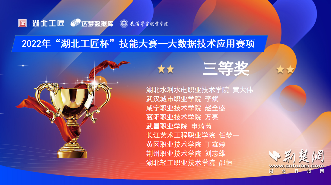 荊楚網(湖北日報網)訊 (記者邱玲鵬 通訊員雷磊)12月11日,2022年“湖北工匠杯”技能大賽——“大數據技術應用”賽項通過線上方式,如期在武漢警官職業學院成功舉辦。該賽項由省經濟和信息化廳、省人力資源和社會保障廳主辦,武漢警官職業學院、武漢達夢數據庫股份有限公司承辦,武漢達夢數據技術有限公司、武漢市軟酷網絡科技有限公司、湖北省軟件企業協會信息技術應用創新工作委員會協辦。