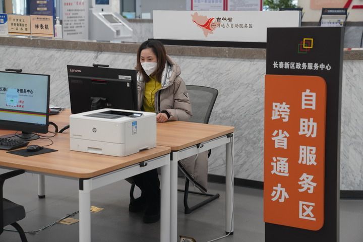 在長春新區政務服務中心,一名企業辦事員在自助辦理業務(2022年12月29日攝)。新華社記者 司曉帥 攝