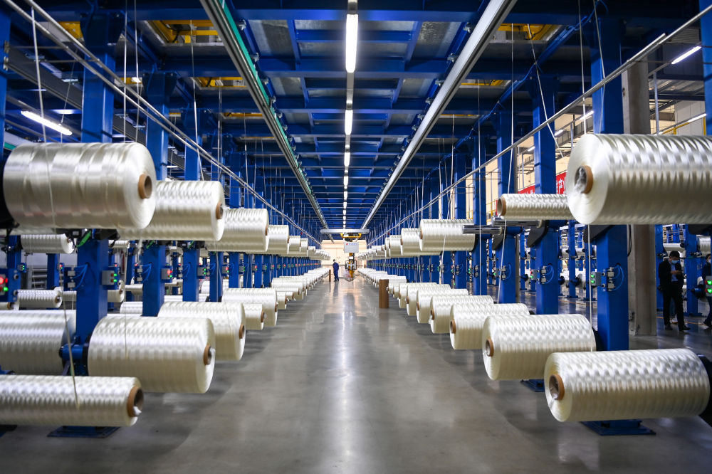 在吉林化纖集團國興碳纖維公司生產車間,工人在整理碳纖維原絲(2022年10月31日攝)。新華社記者 顏麟蘊 攝