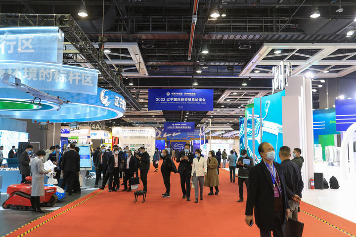 嘉賓在遼寧國際投資貿易洽談會“綠色智造產業產品展”活動上參觀(2022年11月18日攝)。新華社記者 王乙杰 攝