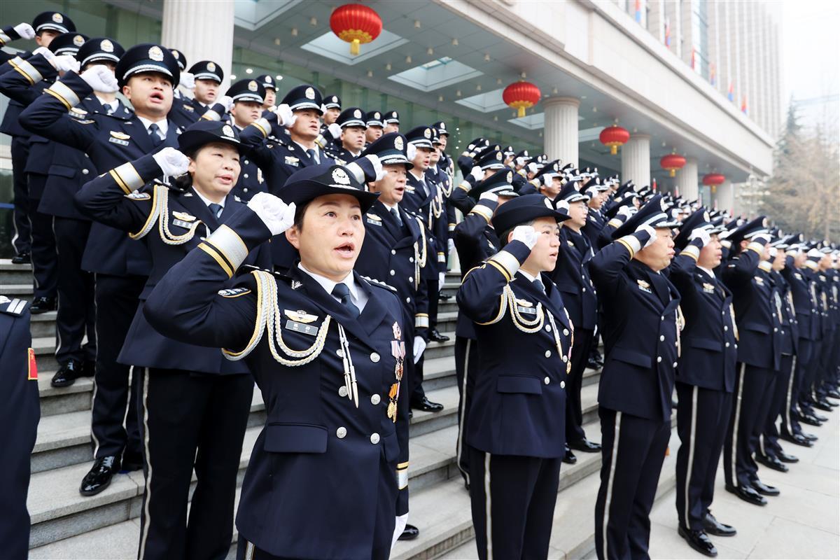 隨后,武漢市公安局督察支隊政委陳端敏舉起右拳領誓,全體民警高舉右拳重溫《公安機關人民警察誓詞》,誓言鏗鏘,精神昂揚。