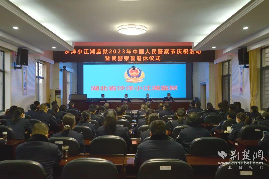 荊楚網(湖北日報網)訊(通訊員 鄔國偉)1月10日是第三個“中國人民警察節”,上午8時,湖北省沙洋小江湖監獄舉行2023年中國人民警察節慶祝活動暨民警榮譽退休儀式,深入學習貫徹習近平向中國人民警察隊伍授旗時重要訓詞精神,切實增強廣大民警職業榮譽感、歸屬感,激勵廣大民警進一步堅定理想信念、筑牢忠誠警魂、凝聚奮進力量。在家黨委成員,機關全體民警、榮譽退休民警代表60余人參加活動。