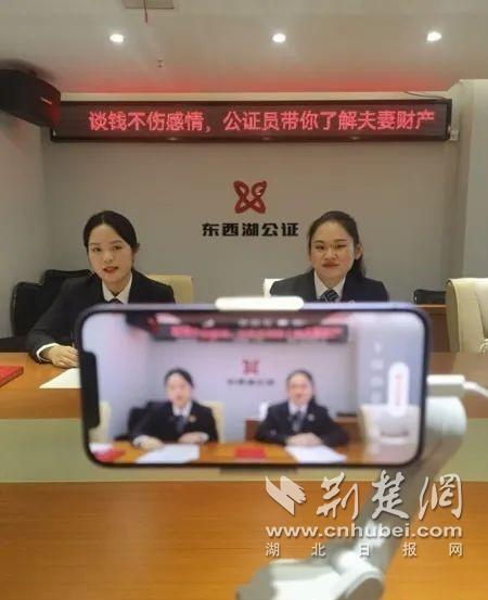 東西湖區公證處的焦點和喻靖進行本次大賽第一場直播。通訊員供圖