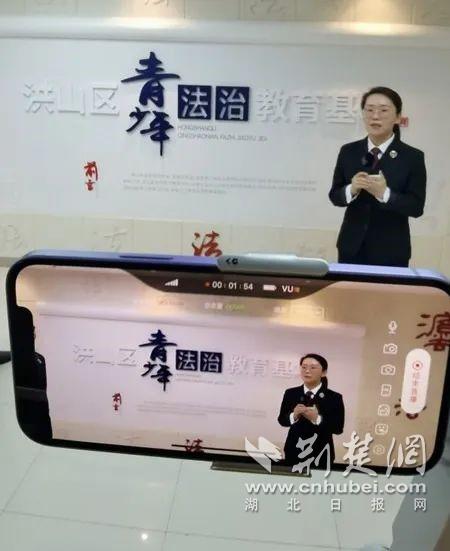 來自洪山區檢察院的易柔池同樣也是一名普法“老兵”。她是洪山區檢察院“秦雨工作室”的一員,該院打造的洪山區法治教育基地深受小朋友的喜愛。互動對答、動畫視頻還有法律知識VR體驗專區,易柔池在直播中帶著網友們一個個體驗。