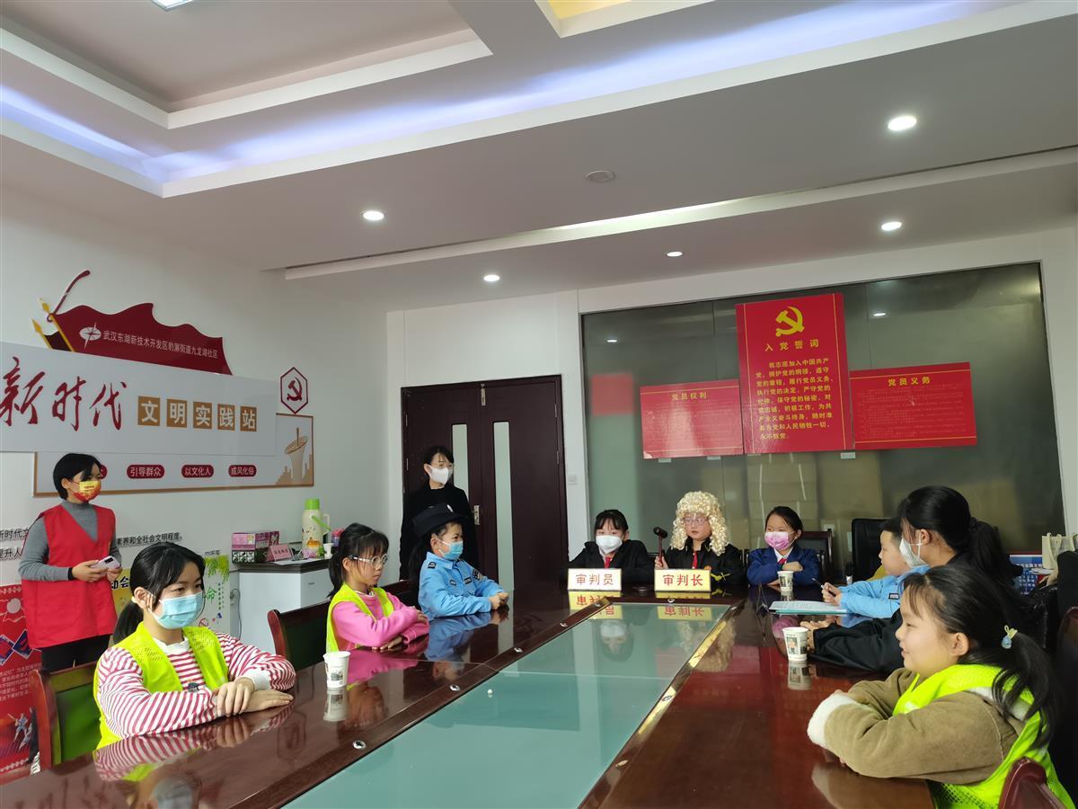 1月11日,武漢市東湖高新區豹澥街道九龍湖社區聯合滿天星社會服務中心,面向社區青少年開展首場“模擬法庭”普法活動。