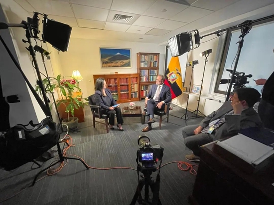 聯(lián)合國(guó)大會(huì)上,總臺(tái)記者采訪厄瓜多爾環(huán)境部長(zhǎng)。