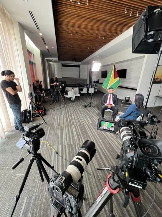美洲峰會(huì)上,總臺(tái)記者采訪圭亞那總統(tǒng)。