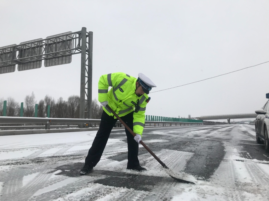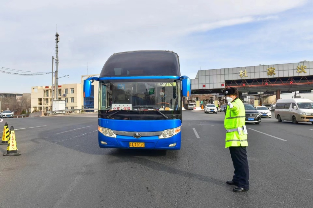 1月7日,北京交警在京港澳高速杜家坎收費站周邊開展春運保障工作。