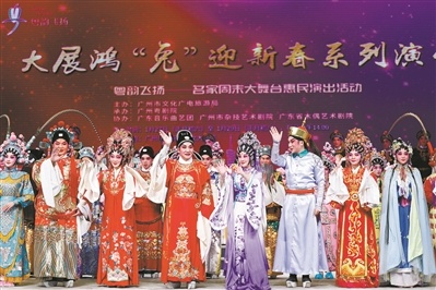 廣東粵劇院也連續獻演系列“春班演出”, 陪伴廣州市民歡度春節。1月26日至2月2日,廣東粵劇院獻上八場賀歲大戲。在廣東粵劇藝術中心,廣東粵劇院一級演員、文華表演獎、中國戲劇梅花獎獲得者曾小敏,一級演員、中國戲劇梅花獎獲得者蔣文端、彭慶華,一級演員文汝清、林家寶、李虹陶、王燕飛、黃春強、冼鑒棠、吳澤東、洪梓鏵、梁曉瑩、朱紅星等,名家新秀輪番登臺,為觀眾戲迷獻演《倫文敘傳奇》《觀音情度韋陀天》《四大名著·選粹》《柳毅奇緣》《紅絲錯》《青春飛揚賀新年——青年折子戲專場》《寶蓮燈》等節目。