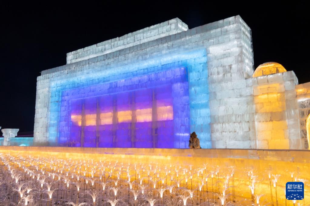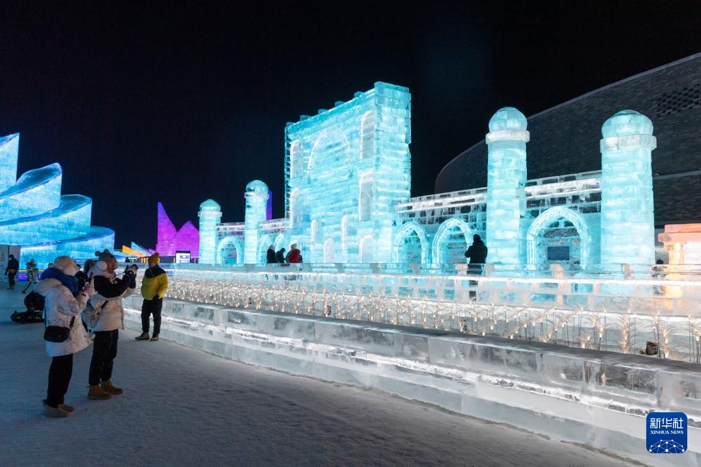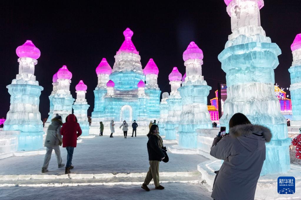 2月1日,游客在哈爾濱冰雪大世界園區(qū)冰雪景觀《阿拉圖廣場》周邊游玩。該冰雪景觀以吉爾吉斯斯坦的阿拉圖廣場為原型設(shè)計(jì)建造。