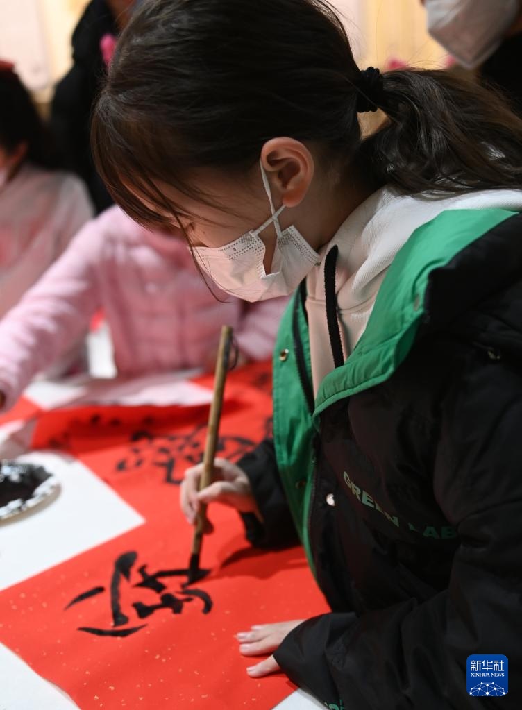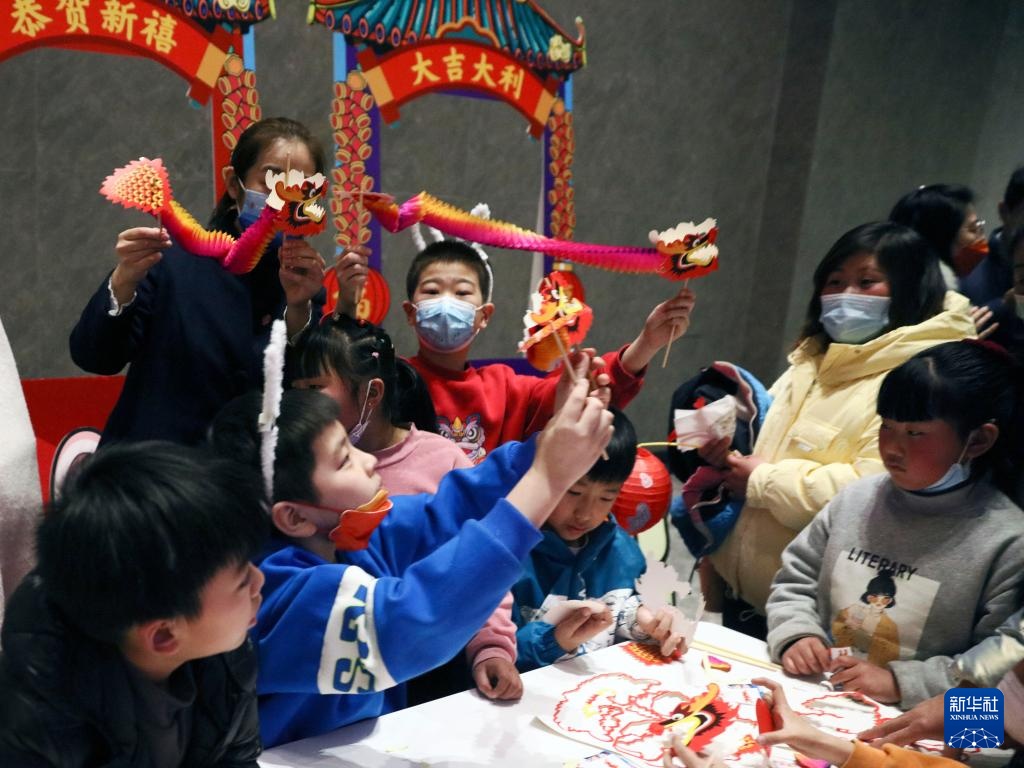 2月4日,小朋友在中國文字博物館體驗手工制作活動。