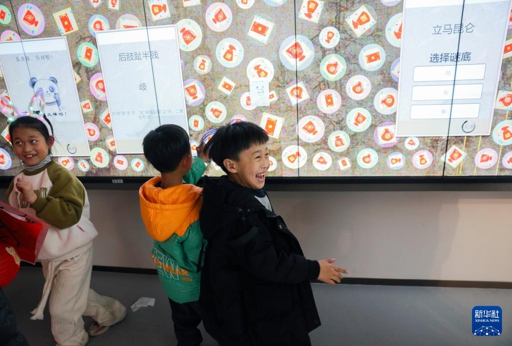 2月4日,小朋友在玩字謎競猜游戲。