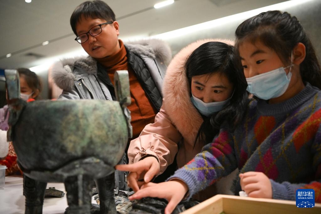 2月4日,小朋友在中國文字博物館體驗文物拼拼樂。
