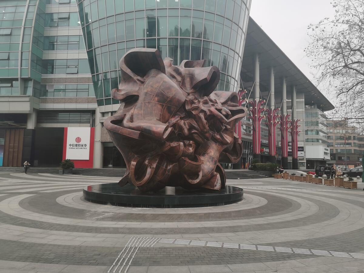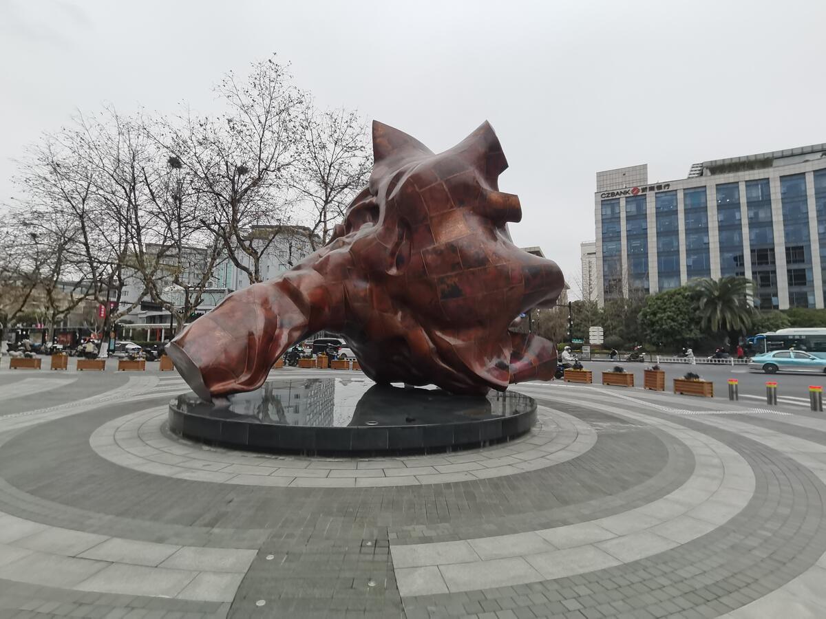 在杭州市上城區慶春路與東坡路交叉口,一個暗紅色的雕塑非常引人注目。從寧夏來杭州玩的林之玉和朋友正在路口等紅綠燈,“很難不注意到這個雕塑,看不出來這是什么,有點像奧密克戎。” 她打趣地說。