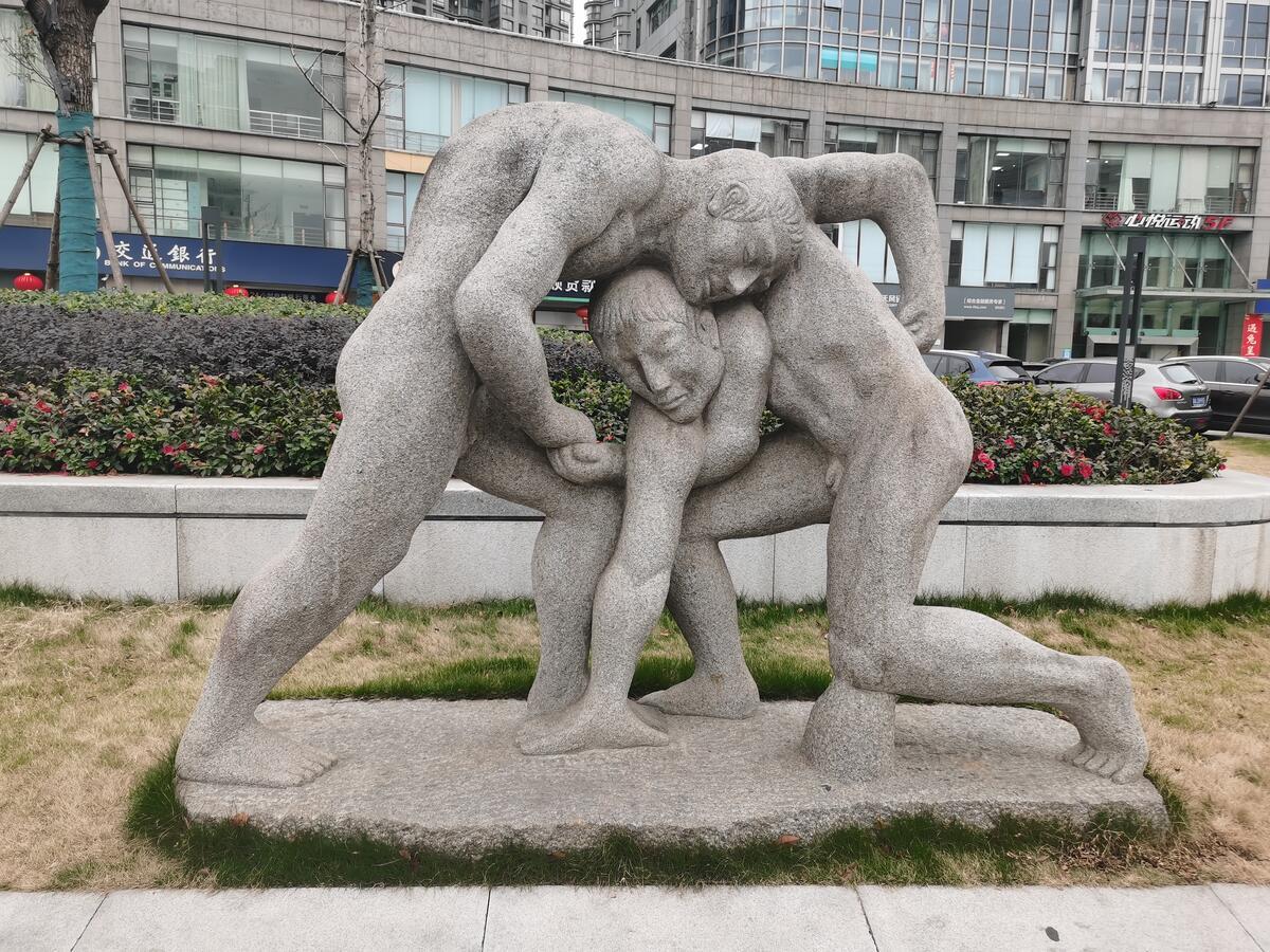 在杭州市蕭山區心意廣場外圍的綠地上,有一組展現運動風貌的雕塑。路過的王先生和妻子看到這些雕塑,覺得不太好,“中國人還是比較傳統的,我們這個年紀接受不了,太赤裸裸了。”張女士看到摔跤的雕塑,仔細看才發現沒穿衣服,頓時被逗樂了,“無所謂哈哈哈哈,展現力量美嘛,我不介意。”來附近辦事的孫天琳則認為,“一路走來我覺得這些雕塑太真實了,可以抽象一些,讓大家發揮更多的想象力。”
