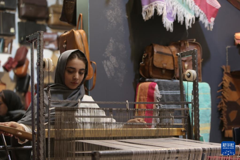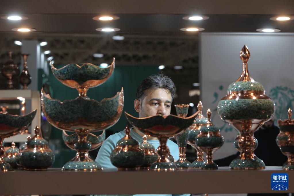 2月7日,參展商在伊朗德黑蘭整理手工藝品。