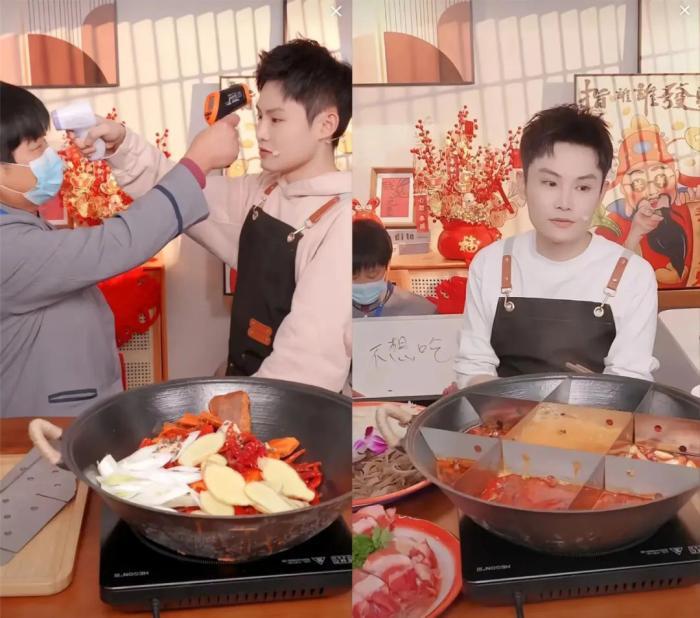 原本二十多個(gè)人完成的工作現(xiàn)在壓到一個(gè)人身上,直播間里手忙腳亂。商品賣完了不會下鏈接,5000條福利款圍巾硬是被賣了一萬七,他說打電話連夜叫老板娘起來織圍巾。九宮格的火鍋,到后來只有中間一格在燒,四周全涼了,像極了此時(shí)的“毛毛姐”。