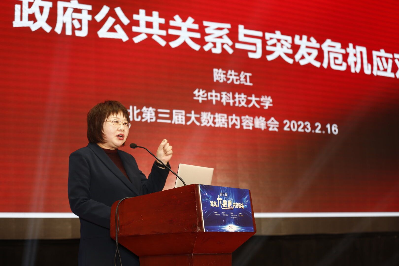 荊楚網(湖北日報網)(記者周杏林)2月16日下午,湖北第三屆大數據內容峰會在東湖之濱舉辦。中國新聞史學會副會長、華中科技大學新聞學院陳先紅教授,應邀作了題為《政府公共關系與突發危機應對》的主題演講。