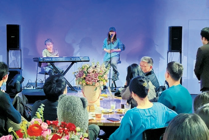 演出結束后的“醉我心者”演后音樂派對上,音樂家、演員們又在咖啡廳中間的小舞臺上繼續演奏和演唱起來,易立明也參與到和觀眾的討論當中。