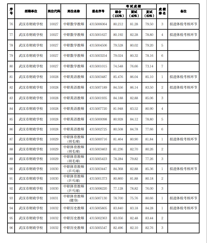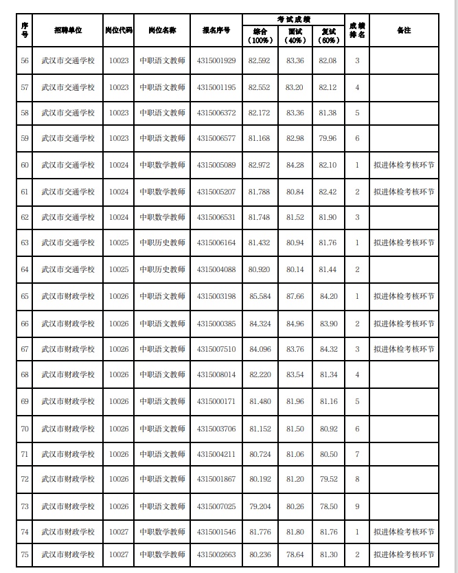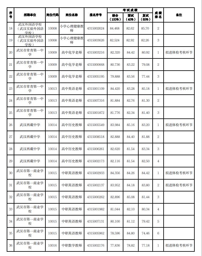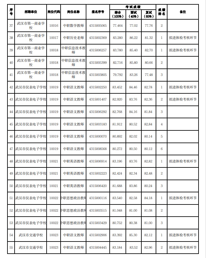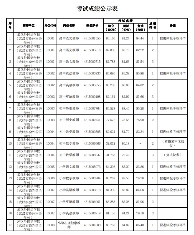 附:武漢市2023年度事業單位公開招聘(教育系統)市教育局直屬單位考試成績公示