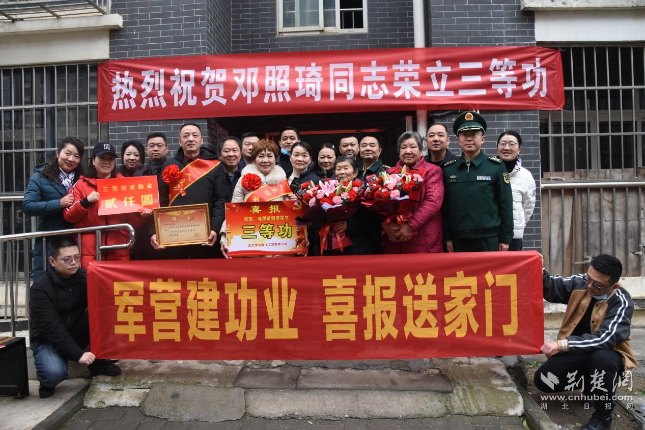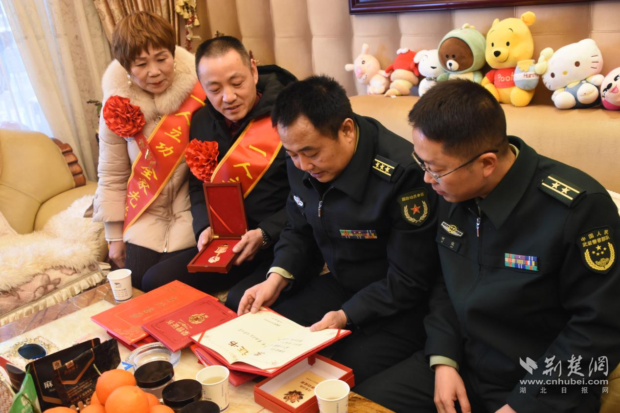 2月24日,武漢市漢南區(qū)軍地聯(lián)合為轄區(qū)4名現(xiàn)役軍人家庭慶送立功喜報,向軍人軍屬頒發(fā)裝裱精美的三等功喜報和慰問金,向軍屬們獻上鮮花,讓軍人軍屬充分享受“一人參軍、全家光榮”這份榮光。