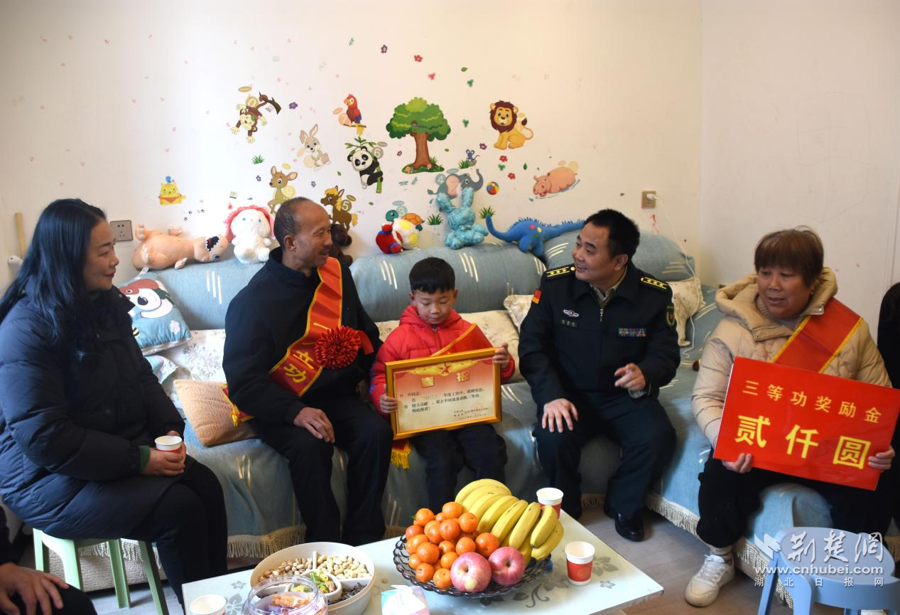 荊楚網(wǎng)(湖北日報網(wǎng))訊(通訊員朱銘 王思)“我爸爸真厲害,長大后,我也要當兵,像他一樣保衛(wèi)祖國。”現(xiàn)役軍人田祥榮立三等功,兒子把他的立功喜報緊緊地抱在懷里,激動不已。