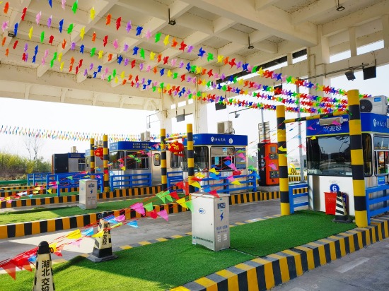 為進一步優化營商環境,踐行“美好出行 共同締造”理念,隨岳運營公司洋梓收費站積極探索打造“網紅道口”,在原有的通行車道上空增加了10根18米長的“風車”。微風吹來,風車沙沙作響,又好看又醒目,有效提醒了司乘減速慢行。