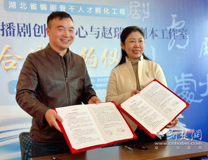 荊楚網(湖北日報網)訊(記者張揚 通訊員徐曼、宋麗娟)3月3日,湖北省編劇人才孵化工程·長江聲浪廣播劇創研中心與趙瑞泰劇本工作室合作簽約儀式在湖北省文聯舉行,著名劇作家趙瑞泰與湖北省編劇骨干人才培訓班學員易星新老編劇“結對子”,開展一對一幫扶。