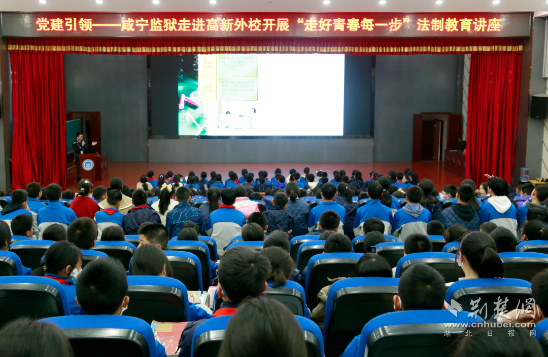 荊楚網(湖北日報網)訊 (通訊員郭學剛 徐敏)法治進校園,普法護成長。3月20日,咸寧監獄民警走進咸寧高新實驗外國語學校,開展“走好青春每一步”法治教育講座,七年級700余名學生現場接受法治洗禮。
