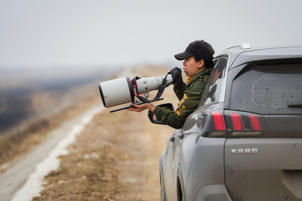 譚文卓探出車窗拍攝鳥類(2月16日攝)。