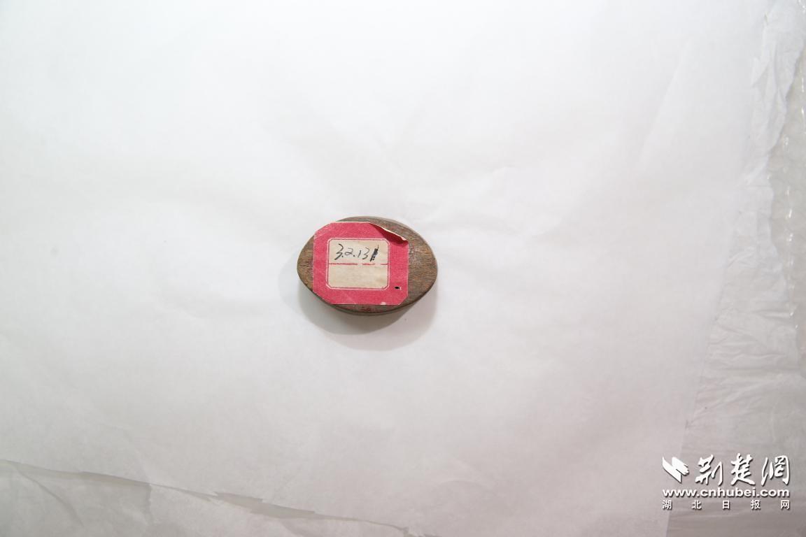 得知消息后,省監獄局文物保護領導小組立即聯系武漢大學萬林藝術博物館,在庫房仔細端詳了這件珍貴的革命文物。這件革命文物是一枚橢圓形的木質印章,整體形狀為規則的橢圓柱體。印章為橢圓形,印章面長徑5.6厘米,短徑4厘米,印鈕面短徑3.6厘米,長徑5.3厘米,高2.3厘米,重24.2克。