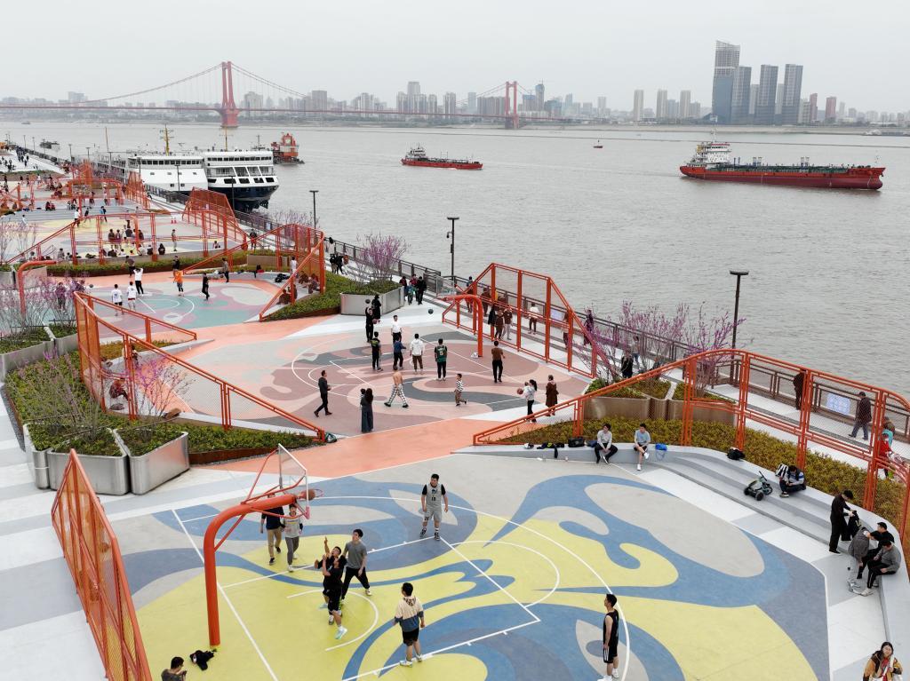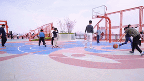 在廢棄碼頭改造成的炫酷國風球場打籃球