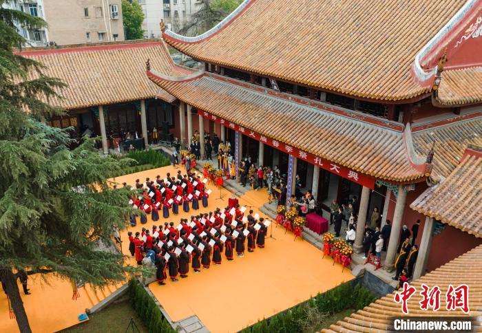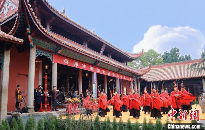 中新網湘潭3月30日電(唐亞慧 王可心)30日上午,湘潭文廟內禮樂和鳴,厚重的大成門徐徐開啟,陣陣渾厚的鼓聲透過歷史的扉頁,將數千年前“圣人”孔子大德遠播的盛況再度重現。