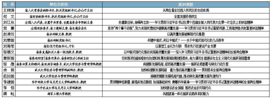 為學深悟透習近平總書記重要講話精神和全國兩會精神,凝聚思想共識,推動貢獻強國建設、民族復興的湖北力量,省委講師團組織一批宣講專家精心備課,推出點單宣講課程。即日起面向社會各界提供點單宣講服務,有需求的單位請發邀請函至省委講師團郵箱jstfdc@vip.163.com,聯系電話:027-87234088。