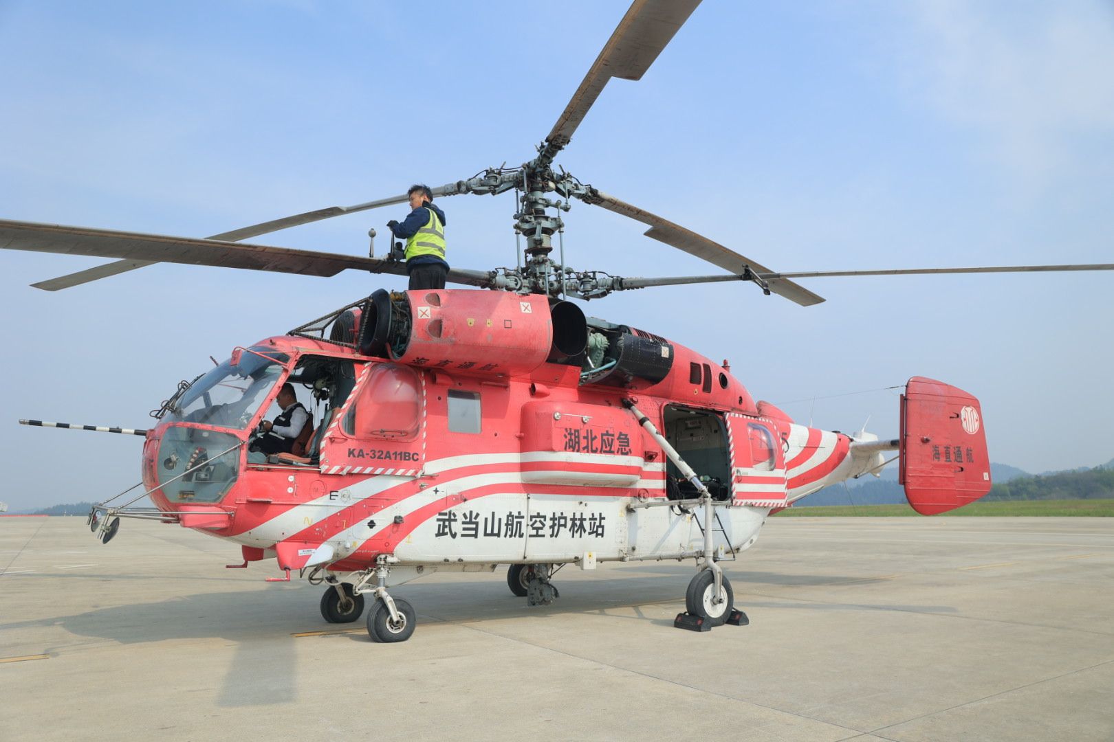 停機場上,一臺k-32系列的直升機引起了記者注意,據工作人員介紹,這臺執行本次巡護任務的“明星”飛機,是一款雙發共軸雙旋翼無尾槳多用途大型直升機,機身全長11.2米,機身寬度3.8米,旋翼直徑15.9米,高5.45米,最大起飛重量12.7噸。今天它的任務是從武當山機場飛向丹江口大壩巡查重點工程區的安全,然后前往武當山古建筑群的森林、文物查看防火情況。