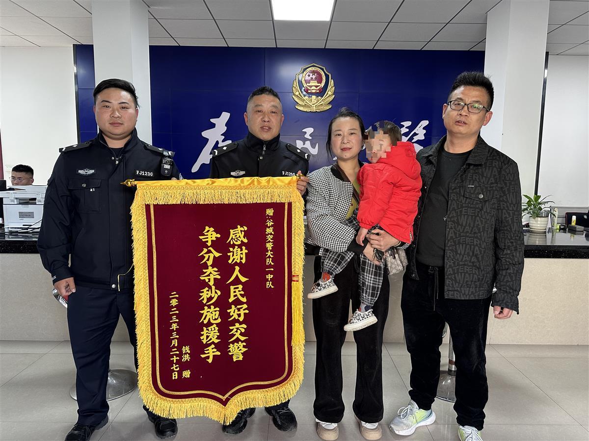 3月29日,湖北省谷城縣轄區(qū)群眾錢先生將一面“感謝人民好交警,爭(zhēng)分奪秒施援手”的錦旗,送到了谷城縣公安局交通警察大隊(duì)一中隊(duì)大廳,以表達(dá)對(duì)民警暖心救助孩子的感激之情。
