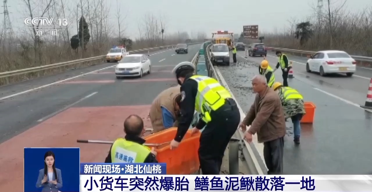 近日,滬渝高速湖北仙桃段發生一起單方交通事故,一輛滿載鮮活鱔魚、泥鰍的小貨車在行駛過程中右前輪突然爆胎,隨后車輛失控撞上中央隔離帶后旋轉180度停在快車道內,車上所載的鱔魚、泥鰍灑滿高速公路兩邊車道和路面上,事故造成雙向車道均出現行車滯留,小車車身嚴重受損,所幸無人受傷。