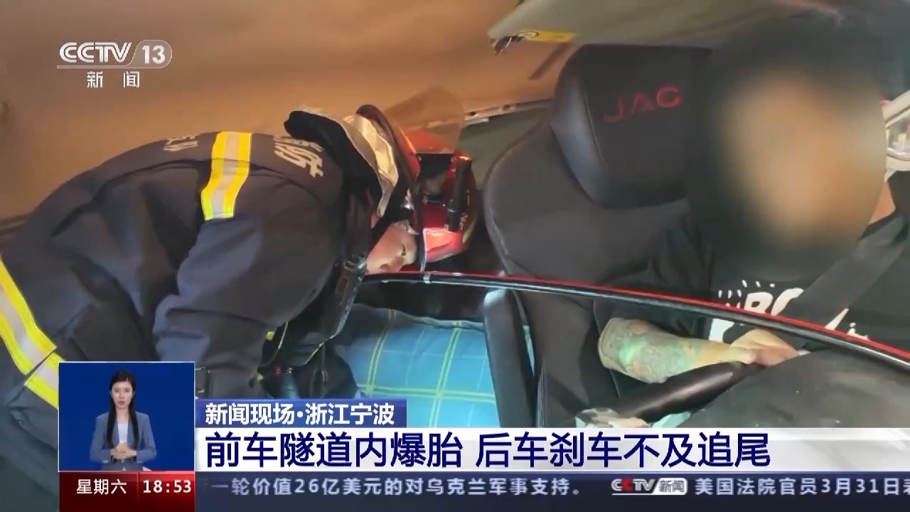 浙江寧波:前車隧道內爆胎 后車剎車不及追尾