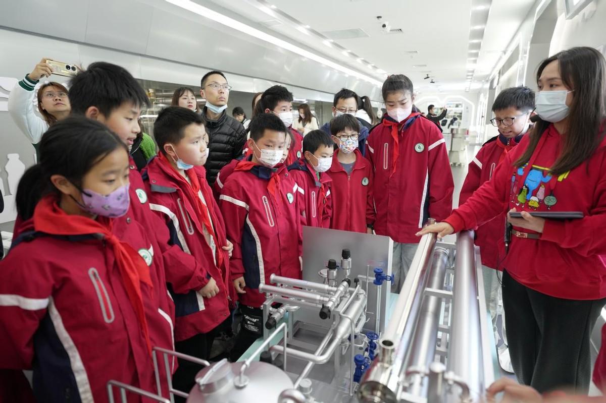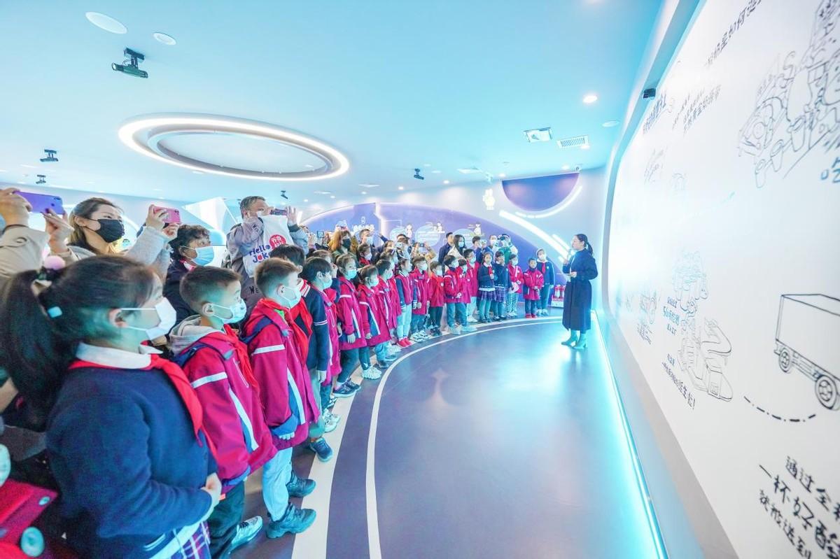 在一樓大廳,大家一起了解了蒙牛的成長歷程和產品種類,孩子們還爭相和蒙牛的卡通形象“冠菌聯盟”合影;在二樓的“奇幻之旅”,大家通過全息投影,領略了酸奶的“前世今生”,了解了酸奶對人體的益處;在“時光隧道”,感受了從手工時代到數字化時代的“奶源革命”;在“透明工廠”,智能化的車間向孩子們展示了集數智中心、前處理車間、奶的凈化、奶的融合、奶的升華、灌裝車間、CIP—工廠“血液循環”系統于一體的世界一流現代化酸奶工廠的科技魅力和極致匠心。