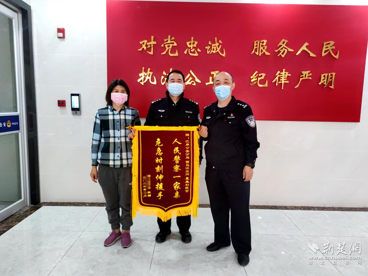 在4月10日上午,轄區群眾廖女士專程趕到武漢市公安局江岸區分局西馬街派出所內,親手將一面寫有“人民警察一家親 危急時刻伸援手”的錦旗,送到社區民警袁未利手中,為江岸公安點贊!