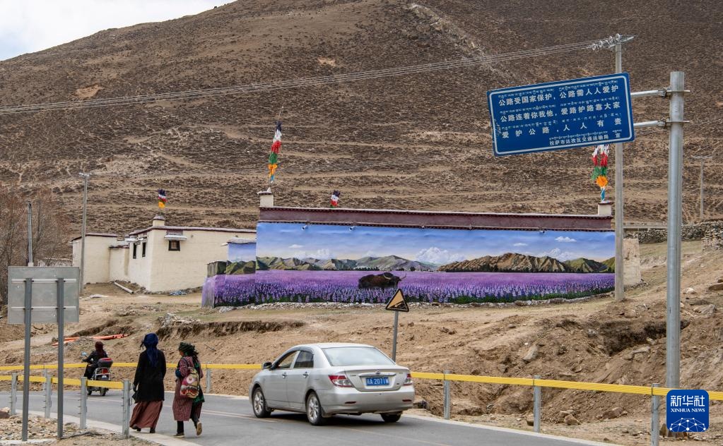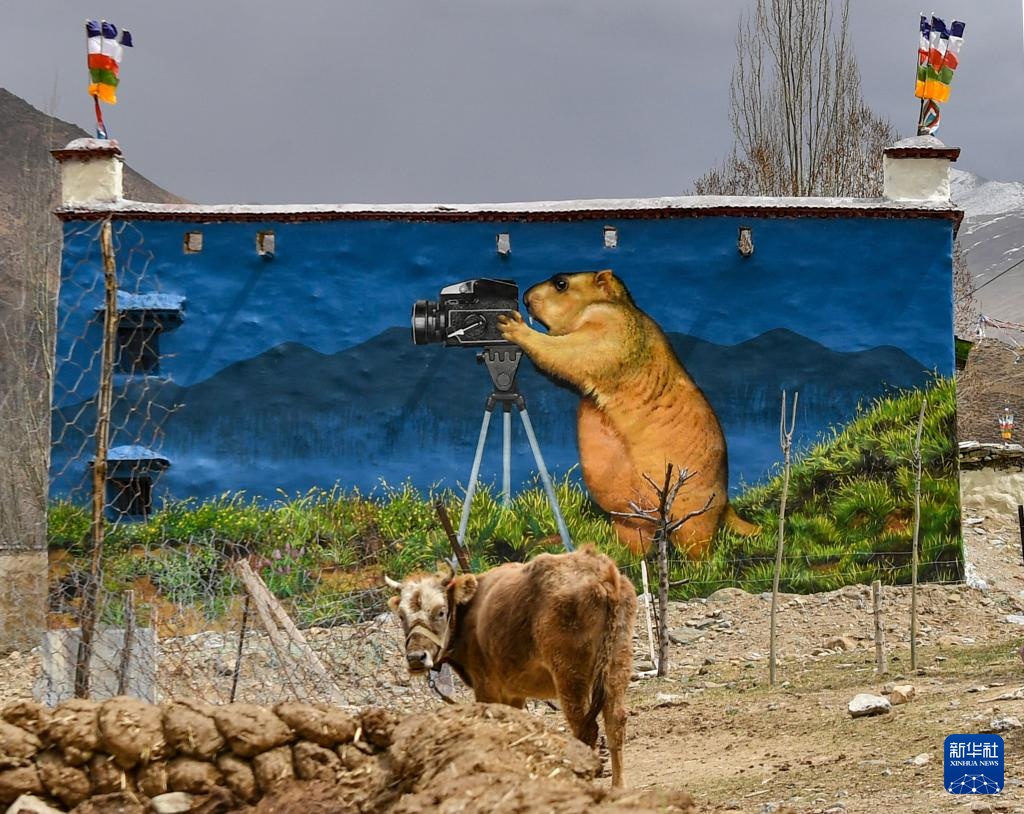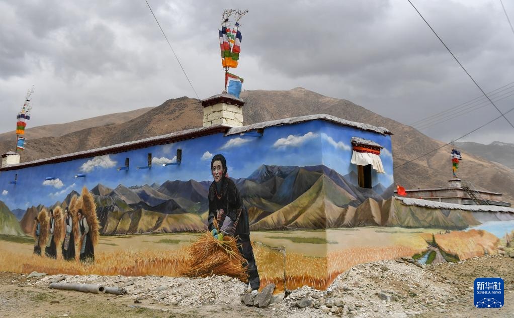 這是4月10日在拉薩市達孜區章多鄉恰村拍攝的墻畫。