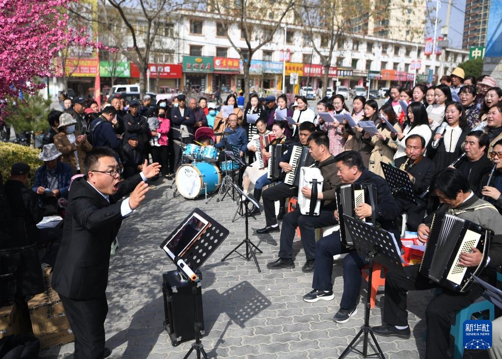 當日,“唱響一座城——靜寧縣文藝志愿服務活動”在甘肅省平?jīng)鍪徐o寧縣東關轉盤花園舉行。該活動定期舉辦,本期主題為“遇見春天”,由靜寧縣音協(xié)專業(yè)人員指揮、伴奏、領唱,以“微演出”形式豐富群眾文化生活,吸引城區(qū)群眾廣泛參與。