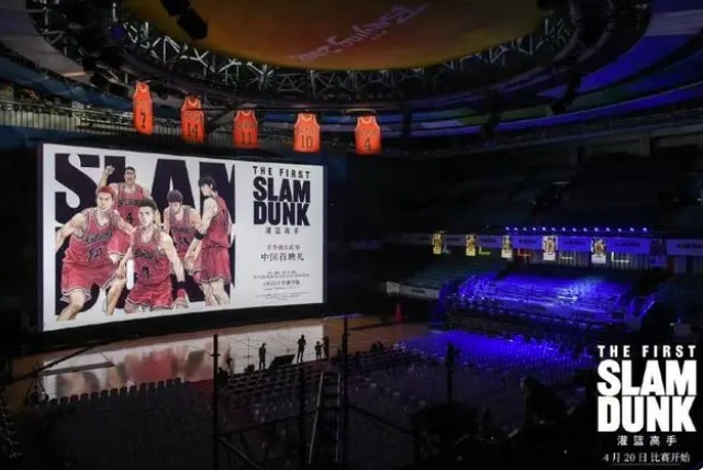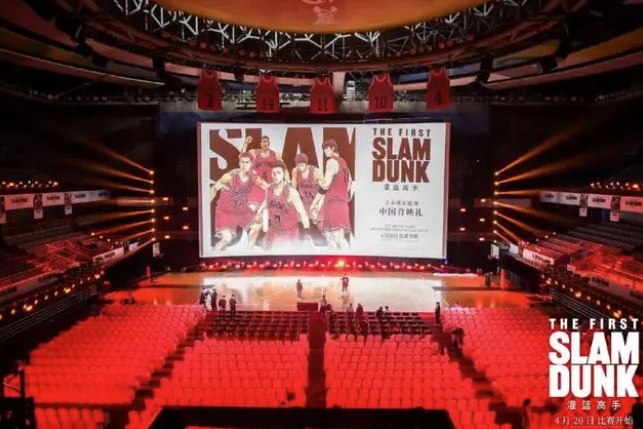 當年一句“全國大賽見”,一等就是20多年,也難怪影片《灌籃高手》能得到如此關注。北大首映現場也是用心良苦,場館外“湘北五虎”的巨幅海報排面拉滿,打卡拍照、投籃裝置、彈幕墻留言儀式感十足。走進體育館,場地配備了國內最大移動銀幕——27米Cinity巨幕,令人仿佛置身比賽現場。