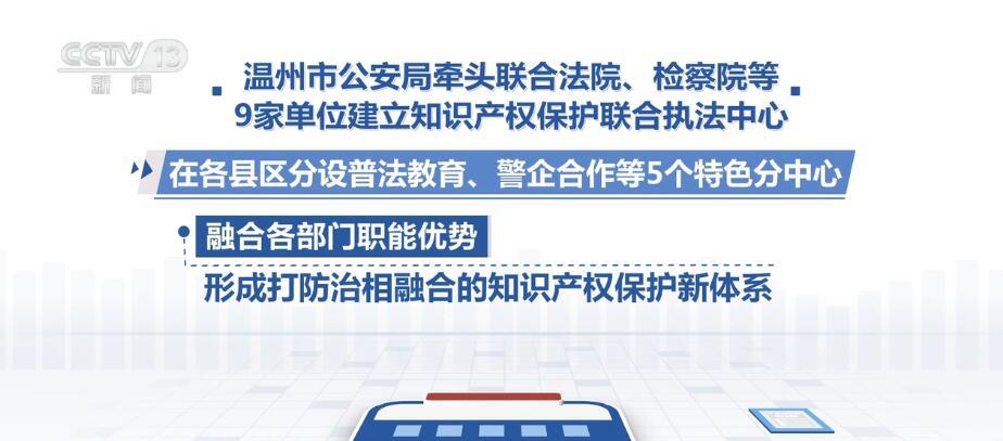 溫州市公安局牽頭聯(lián)合法院、檢察院等9家單位建立知識產(chǎn)權(quán)保護(hù)聯(lián)合執(zhí)法中心,在各縣區(qū)分設(shè)普法教育、警企合作等5個(gè)特色分中心,融合各部門職能優(yōu)勢,形成打防治相融合的知識產(chǎn)權(quán)保護(hù)新體系。自2021年12月中心成立以來,偵破刑事案件65起,打掉制售假犯罪團(tuán)伙20個(gè),搗毀制假源頭30處,查獲假冒商品20余萬件。