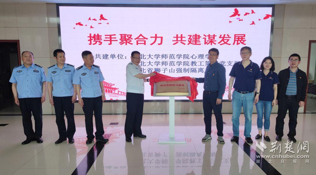 雙方圍繞合作共建的內容和形式進行了深入探討,簽訂了《心理健康服務平臺共建協議》,舉行了實習基地揭牌儀式。隨后,湖北大學師范學院心理學系師生參觀了省獅子山強戒所專業中心。