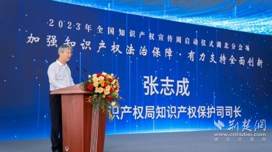 荊楚網(湖北日報網)訊(記者趙秀琳 通訊員林治國)4月20日,2023年全國知識產權宣傳周啟動儀式湖北分會場活動在武漢光谷資本大廈舉辦。省政府副秘書長趙俊出席并宣布活動啟動,國家知識產權局知識產權保護司司長張志成致辭。