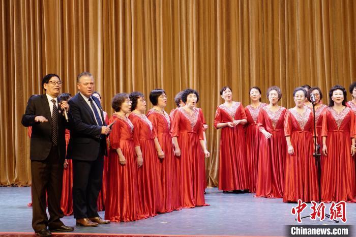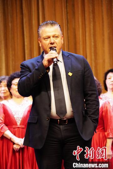 菲利普校長(zhǎng)與“山之歌”合唱團(tuán)同臺(tái)獻(xiàn)唱。 受訪者供圖