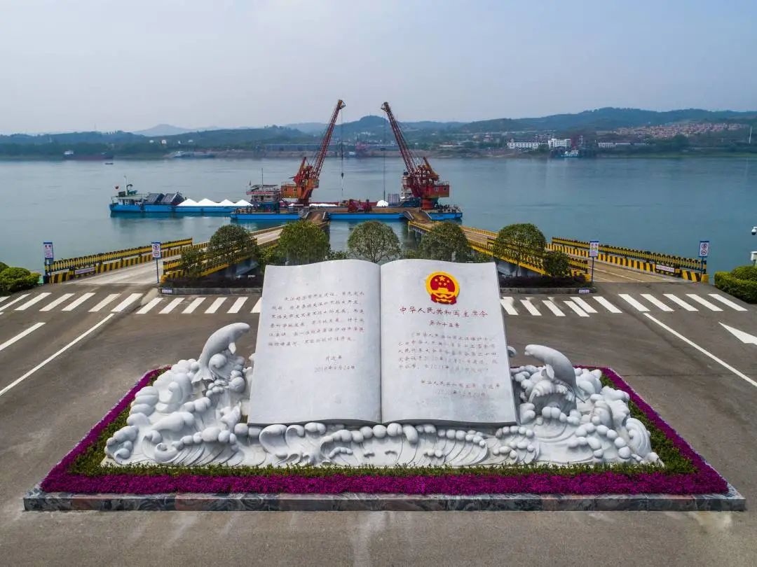 在興發集團宜昌新材料產業園,江邊一塊銅鑄的圓形地標上,“2018.4.24”幾個意義非凡的數字,記錄著一場重大轉型的開始。這里,是習近平總書記對長江大保護的“立規之地”。
