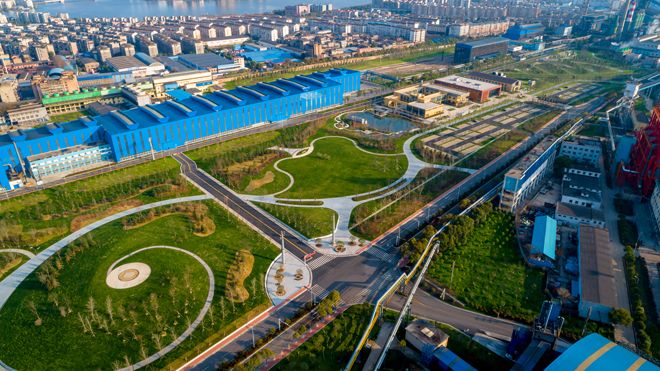 走進長江邊的寶武集團鄂城鋼鐵有限公司廠區,一片綠意盎然,看不出這是一家有著60多年歷史的鋼鐵廠。街對面是游客中心,掛著2021年12月30日由文旅部頒發的“AAA國家級旅游景區”金色牌匾。